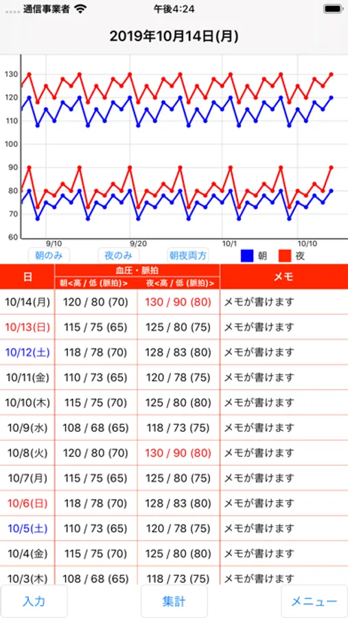 グラフに表示する折れ線は、朝のみ、夜のみ、朝夜両方からワンタッチで切り替えできます。
