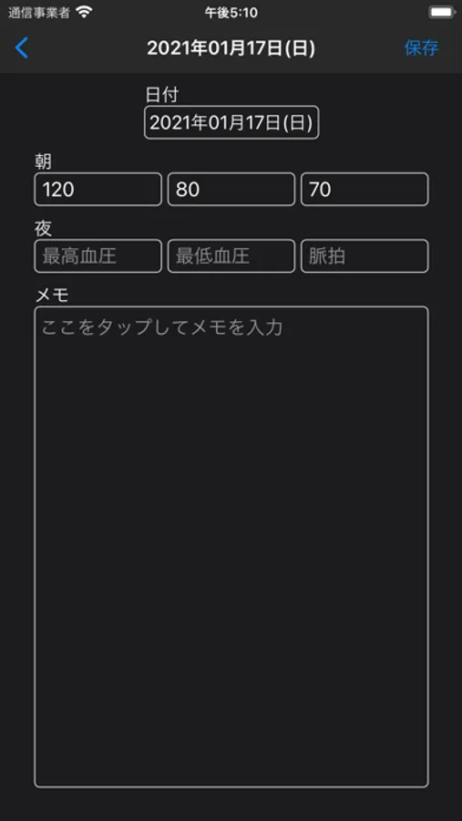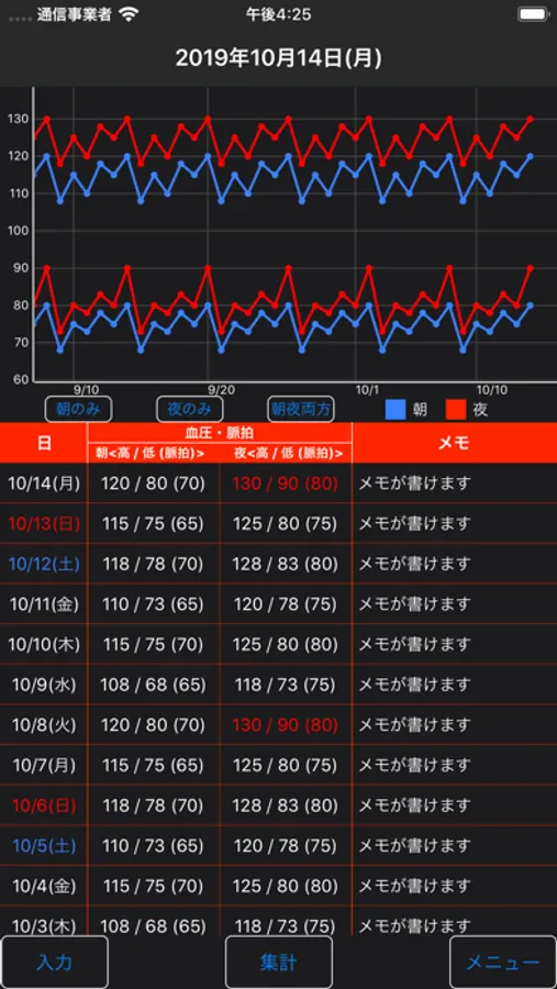使い方はとても簡単です。入力ボタンを押して最高血圧、最低血圧、脈拍を入力するだけです。