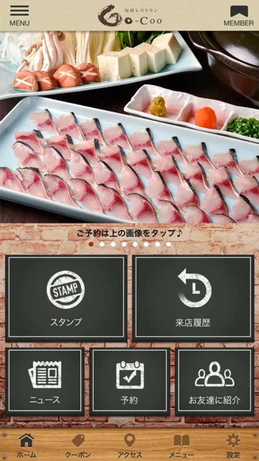 公式アプリでは、旬鮮レストランGo-Cooの色々な情報やアプリユーザー限定のお得なサービスが手に入ります!