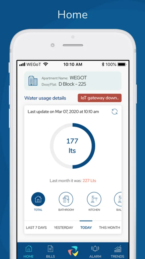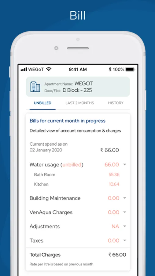 • Tracking of entire facility water usage like lorry water, bore well/individual sump, OHT etc