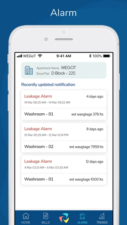 • Instant notification of leaks, broken pipes, wastage etc. to effectively conserve water