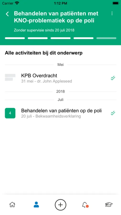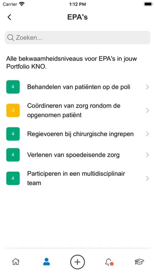 In de app kun je eenvoudig beoordelingen invoeren, uitgevoerde verrichtingen registreren en een overzicht vinden van je bekwaamheidsniveaus voor EPA's en Verrichtingen.