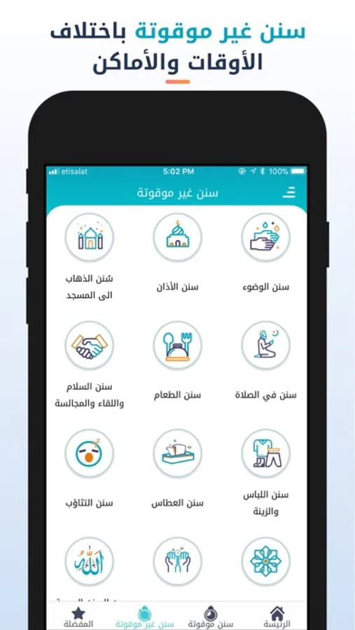 The Sunan of the Prophet Peace Be Upon Him are abundant and various. Thus, “Sunan” application was developed to gather and present all of the daily Sunan of the Prophet Peace Be Upon Him in order of time of the day, since He wakes up early in the morning and until he goes to sleep at night, in addition to all other daily Sunan that are not associated with a specific time of the day.