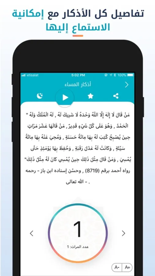 - سبحة إلكترونية تسهل على المستخدم العد في الأذكار اليومية.