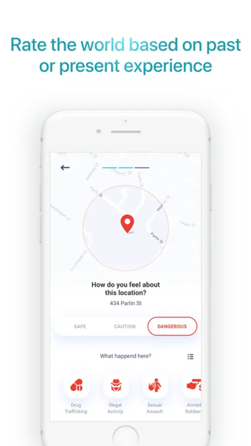 Our application is built on one simple concept: working together to keep each other safe. Users like you create an interactive map that records individual safety experiences and determines the safety rating of locations across the globe.