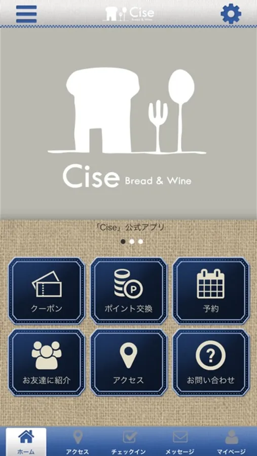 このアプリでは、Ciseの最新情報の受け取りや便利な機能を使う事ができます。