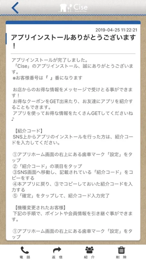 CiseのアプリをSNSを通じてお友達に紹介する事ができます。
