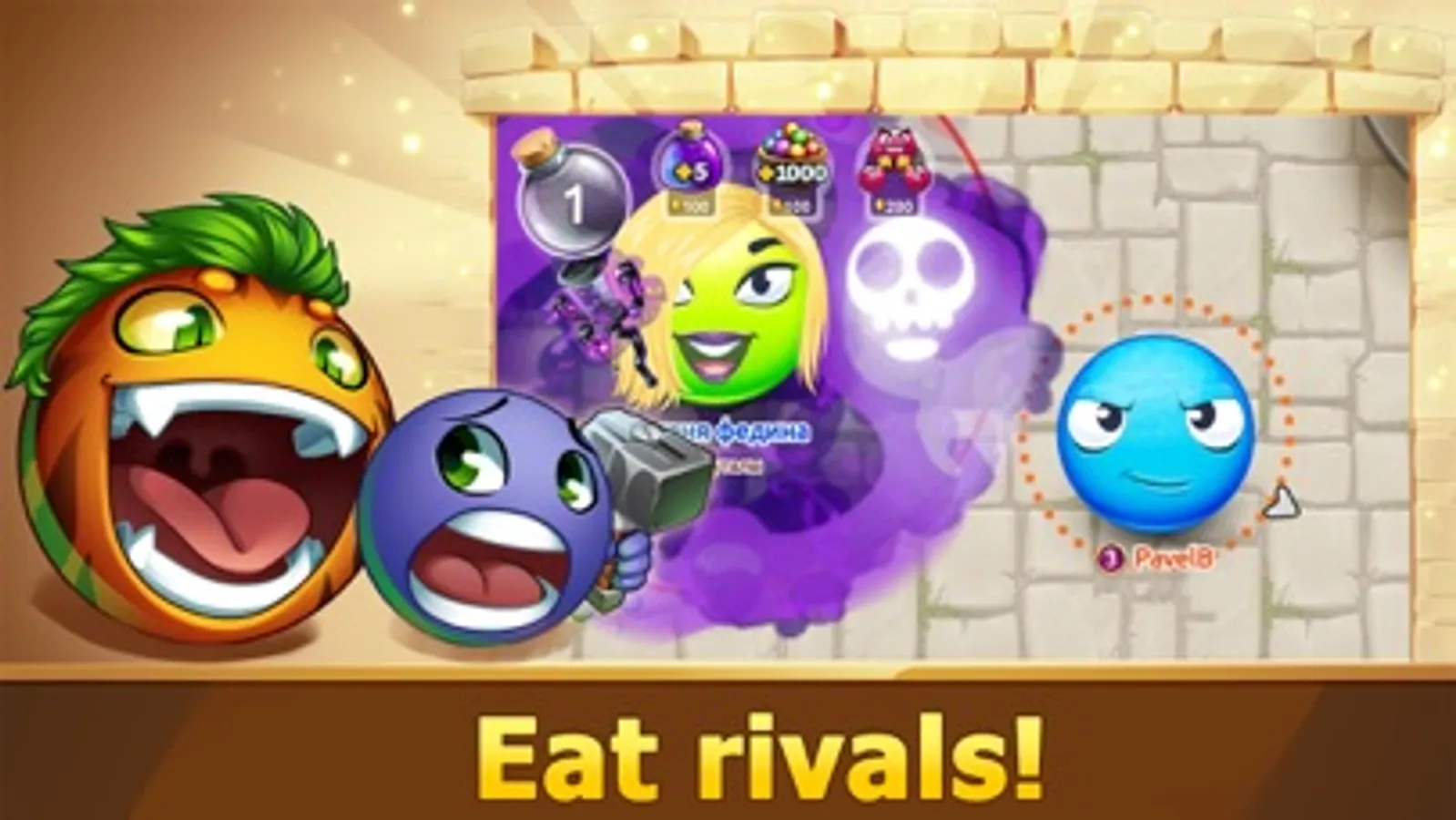 You don’t need to be just a blank blob. Customize and make your hero stand out by adding eyes, mouth, hairstyle, beard. Then go, dominate the rival battle io game looking the best you!