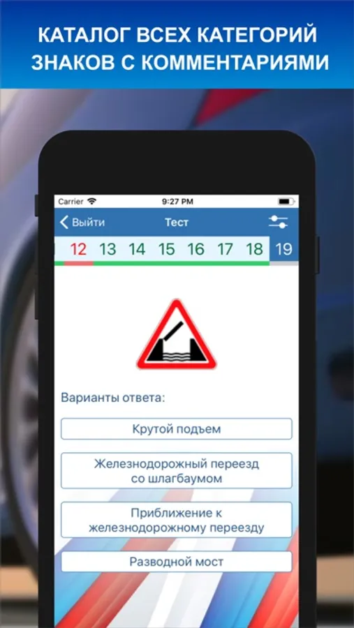 В приложении также есть удобный тест, с режимом работы над ошибками, для проверки своих знаний ПДД.