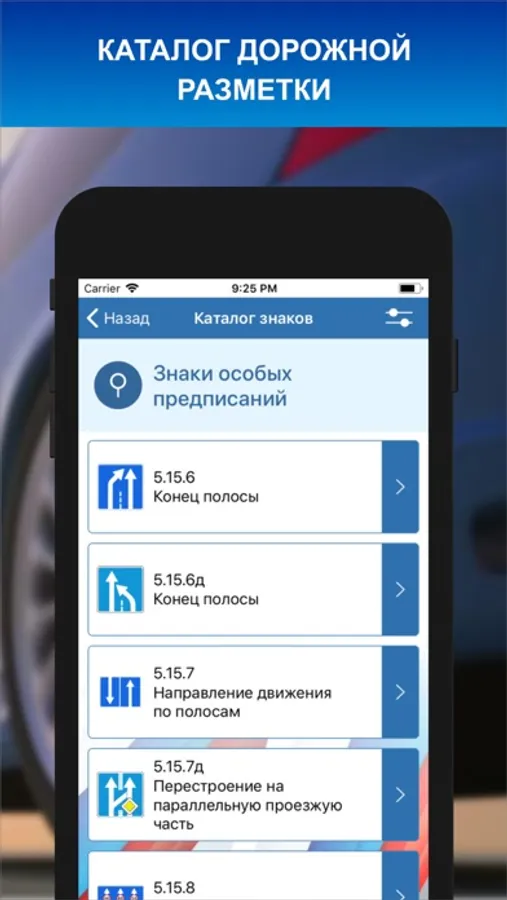 В простом и понятном интерфейсе вы всегда сможете найти интересующий вас дорожный знак. К каждому знаку прилагается описание. Полный список всех дорожных знаков всегда под рукой.