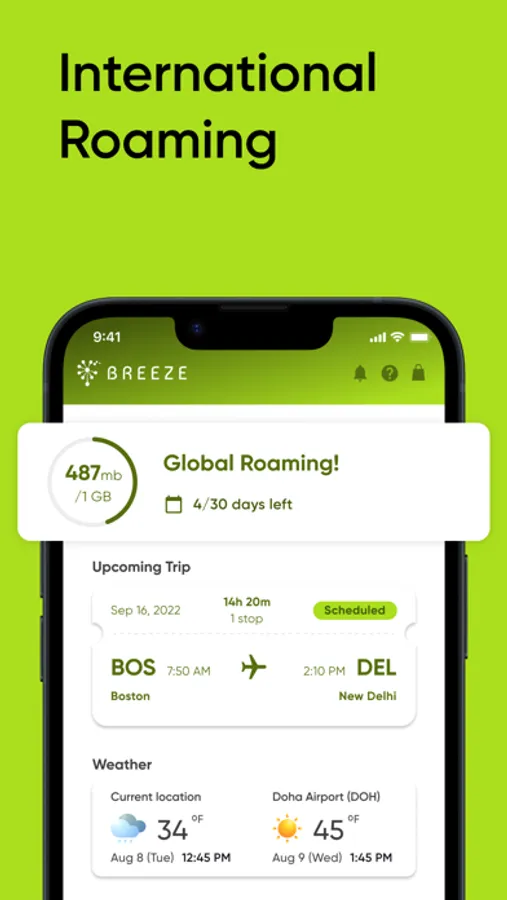 For global travelers, Breeze provides international roaming at a fraction of the cost with eSIM activation in seconds. Stop searching for WiFi and stay connected in over 200 countries - a must have for smooth travel!