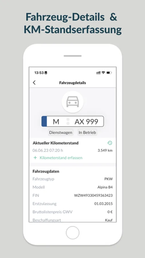 - Kilometerstands-Erfassung: Tragen Sie den aktuellen Kilometerstand Ihres Fahrzeugs direkt über die App ein.
