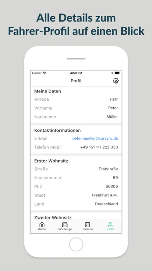 - Fahrer-Profil: Erhalten Sie Einsicht in die persönlichen Fahrerdaten inkl. Kontaktinformationen zu Flottenmanagern und Vorgesetzten.