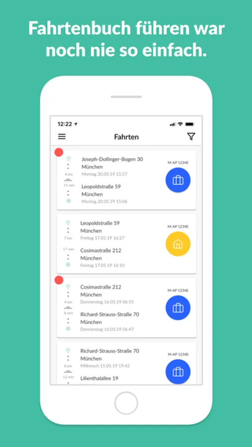 Als Ergänzung oder Ersatz für Ihr manuelles Fahrtenbuch – das digitale CARSYNC Fahrtenbuch. Profitieren Sie von der unkomplizierten Erfassung von Geschäfts- oder Privatfahrten, zeit- und ortsunabhängig mit dem Smartphone, unkompliziert und schnell. Mit der Nutzung von Fahrtenbüchern müssen Privatfahrten beim Finanzamt nicht mehr pauschal über die 1 Prozent-Regelung versteuert werden. Abhängig von Fahrzeugmodell und Streckenprofil kann die Nutzung des Fahrtenbuchs über 2.700 Euro Steuervorteil einbringen. Sie erhalten außerdem Informationen über offene Aufgaben. Wohn-, Arbeits- und Familienfahrten können erfasst werden. Umwege werden automatische erkannt und eine Deklarierung als Mischfahrt wird möglich. Optional: Die Pflege des digitalen Fahrtenbuchs via Internet-Browser über app.carsync.de/