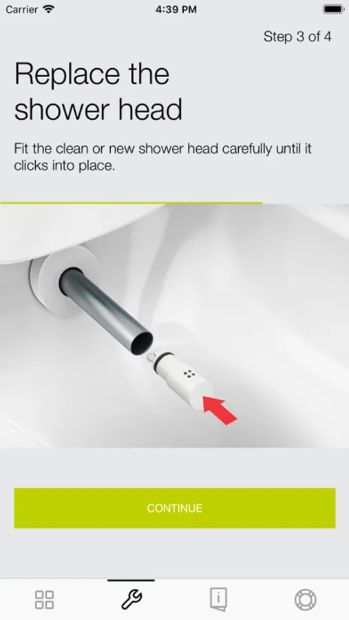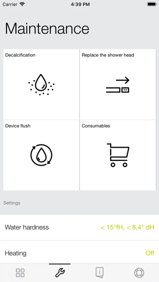 In addition to all showering and maintenance functions (e.g. descaling, filter replacement, thermal cleaning), you can register your shower toilet for warranty, order supplies, contact our customer service, or change the basic settings (e.g. water hardness, water temperature, language, etc.). With the app, you can save and manage your profile and get access to special features such as the device flush.