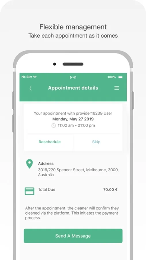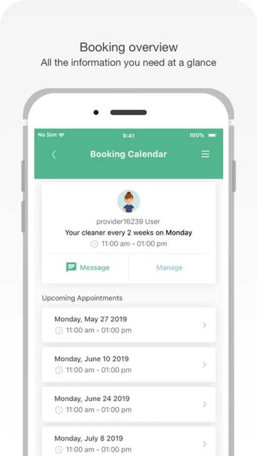 + Profiles of cleaners: When making a new booking, you'lll see profiles of the available cleaners, including ratings and reviews from current and previous customers.