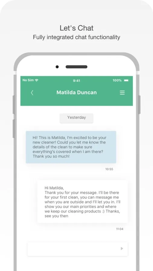 + Chat with your cleaner: You can chat with your cleaner at anytime using our integrated chat feature.