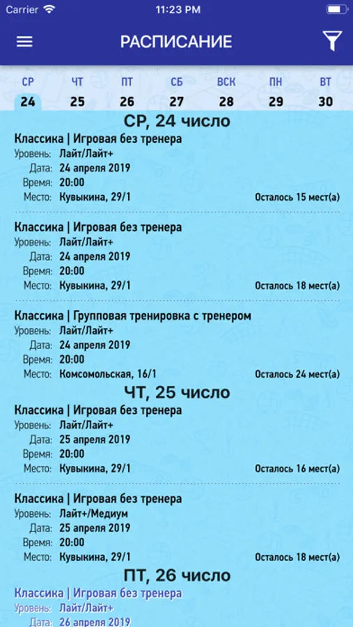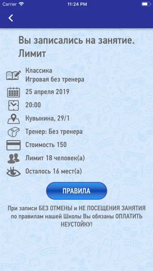 Позволит вам записываться на занятия и оставаться в курсе событий.