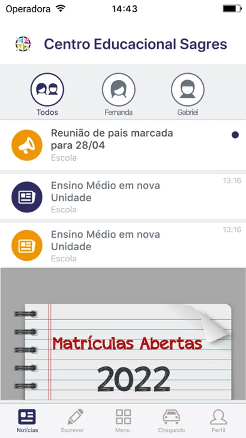 Com este aplicativo, os pais, responsáveis e professores poderão receber as últimas informações da escola, as notícias do dia a dia dos seus filhos e o calendário de atividades escolares.