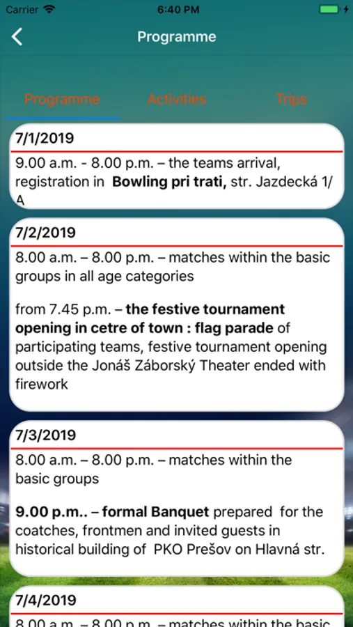 tournaments such as: Youth summer football tournament Fragaria Cup, Youth winter football