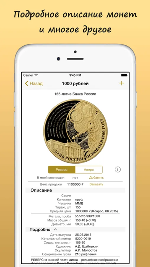 Каталог и магазин памятных и инвестиционных монет Российской Федерации с 1992 года по настоящее время. Приложение полностью "оффлайн" и не требует подключение к интернету*.