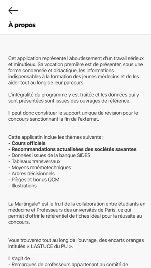 L'application La Martingale* est le fruit de la collaboration entre étudiants en médecine et Professeurs des universités de Paris, ce qui permet d’offrir un référentiel idéal pour la réussite au concours.