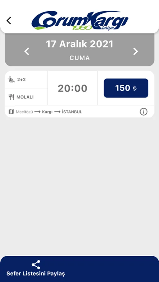 Çorum Kargı Turizm’ın şehirlerarası ulaşım biletlerinin satılmasını sağlayan bir iPhone uygulamasıdır.