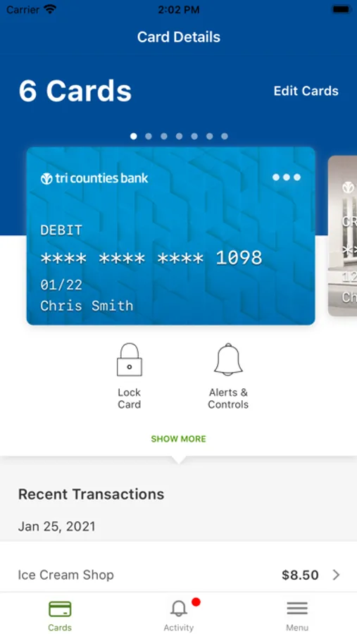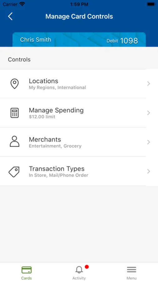CardControls protects your debit cards by sending transaction alerts and enabling you to define when, where and how your cards are used. Download to your smartphone, then set your preferences to monitor and manage your cards.