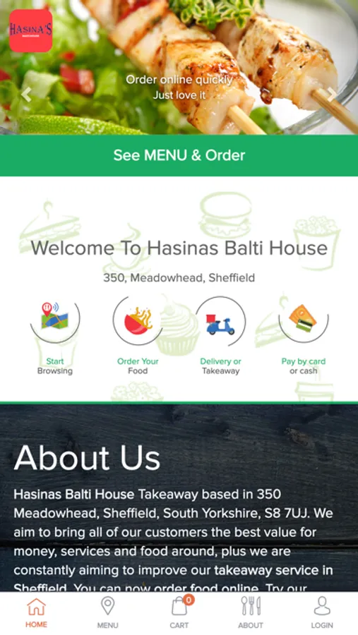 Hasina's Balti House Takeaway is based at 350 Meadowhead, Sheffield, South Yorkshire, S8 7UJ. We aim to bring all of our customers the best value for money, services and food, and we are constantly aiming to improve our takeaway service in Sheffield. You can now order food online. Try our online website which contains all our takeaway menus. We offer deliveries to all surrounding areas of Sheffield We offer all our customers fast food delivery. You can now order your favourite dish online and get fast home delivery. We are very particular about our service and quality to give our customers a better experience; which is why we are now proud to offer this fantastic online ordering website. You can even pay online and deliver your food to your home in Sheffield.