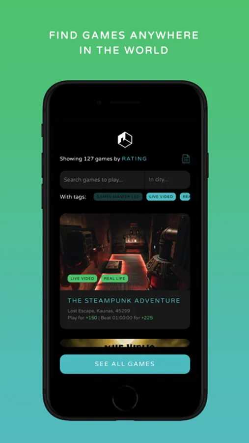 Players can find games anywhere in the world from a currently updated library of escape games. Escape games are promoted to players based on their current location, community rating or difficulty level.