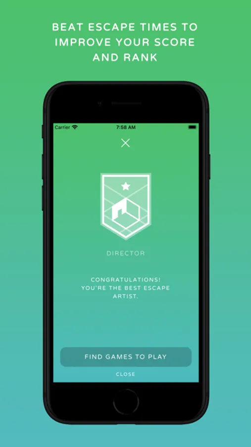 Escape is a companion app that gamifies the play of physical escape games. Players compete in a global arena to try and better each other’s escape times to improve their rank and earn rewards for their achievements.