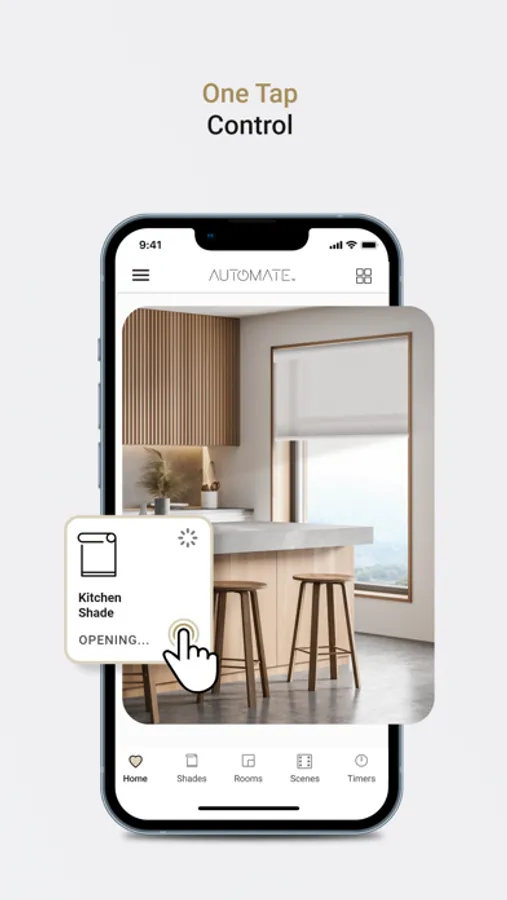 The new Automate Pulse 2 App not only allows you to activate, adjust and automatically position your shades but does so through One Tap on the Shade Tiles. One Tap to close, One Tap to open and One Tap to activate and stop scenes. A double tap stops a shade’s operation, and a single long press opens a dedicated shade control screen giving you access to more customized settings.
