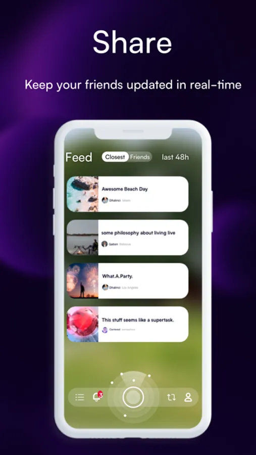 · The app opens right to your camera so you can quickly record a video and post it in a marble!