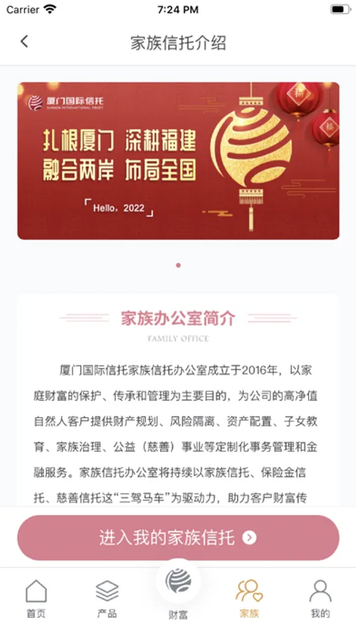 厦门国际信托有限公司是经原中国银行业监督管理委员会批准设立的具有法人资格的非银行金融机构。公司前身厦门国际信托投资公司是由厦门市财政局下属的厦门经济特区财务公司组建而成,成立于1985年1月。厦信财富APP是专为高净值客户打造的集产品在线预约、远程双录、电子签约、账户查询、活动预约等服务的优质在线理财平台。