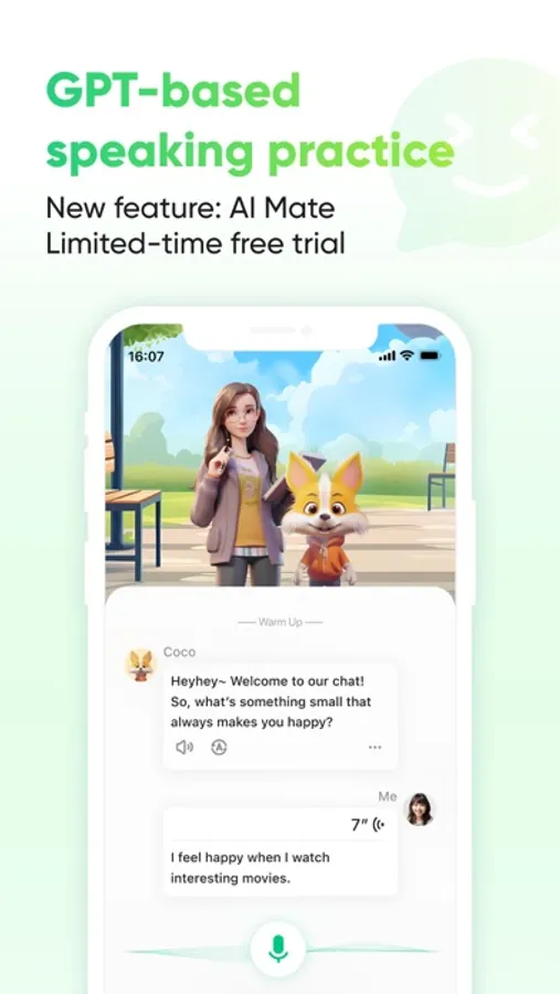 LingoChamp has launched the "AI Mate". This is an AI voice conversation which based on GPT technology. Now two languages are available: English and Korean. You must try it for the following reasons: