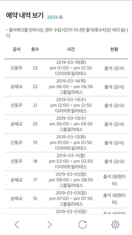 모바일 예약시스템으로 회원-강사간의 실시간 예약관리가 가능하며, 디테일한 예약정책을 설정하여 효율적이고 안정적인 관리시스템을 제공합니다.