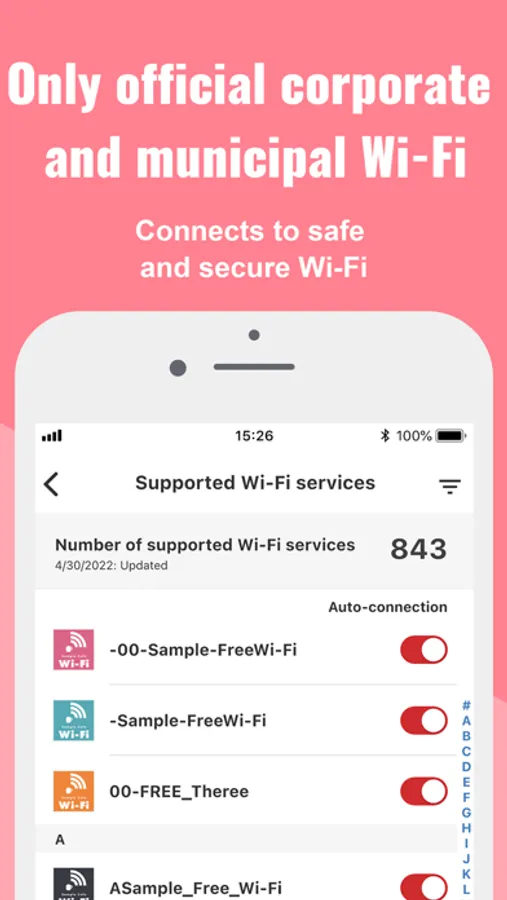 The corresponding Wi-Fi service is available at the likes of public transit and facilities at stations, airports, etc., and at trade outlets of convenience and department stores, etc. offering highly reliable public Wi-Fi service. The service will automatically connect you only to those access points that are secure, trustworthy, and from reliable providers.