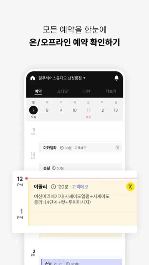 카카오헤어샵 for 디자이너앱으로 예약과 스타일을 편리하게 관리하세요.