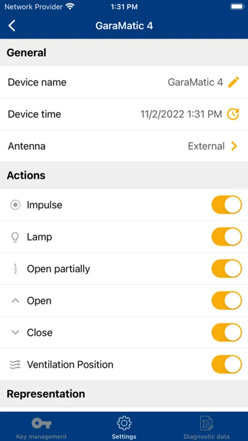 You can send permissions (keys) to family or friends, for example, via text message, e-mail or messenger. You don’t even have to be home to send a key, since keys are transmitted via a certified server in Germany. Manage your keys right in the app.