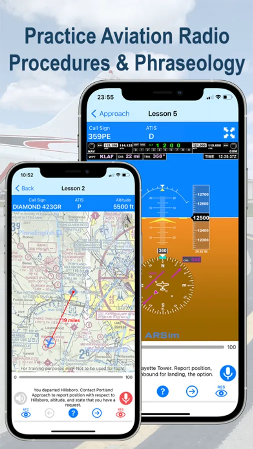 The PlaneEnglish Aviation Radio Simulator (ARSim) is an interactive aviation radio simulator created to enable pilots to learn and master aviation radio communication, procedures, and phraseology, and gain the confidence to overcome the fear and trepidation of talking to Air Traffic Control.