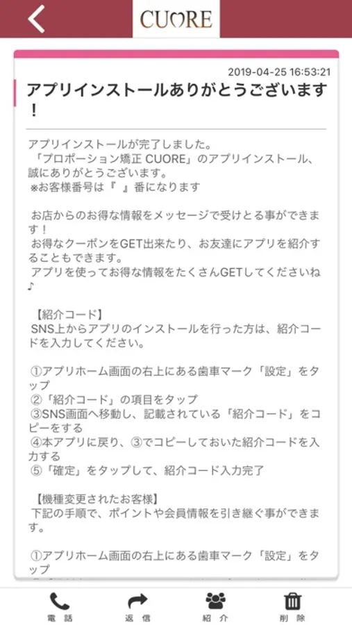 CUOREのアプリをSNSを通じてお友達に紹介する事ができます。