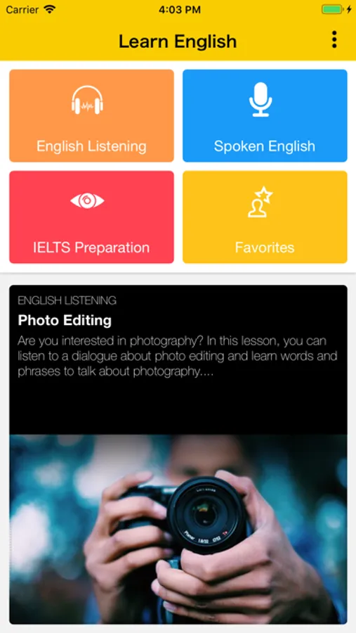 - This is free app to learn English and improve your English Listening, English Speaking, English Writing, English Grammar, English Vocabulary...