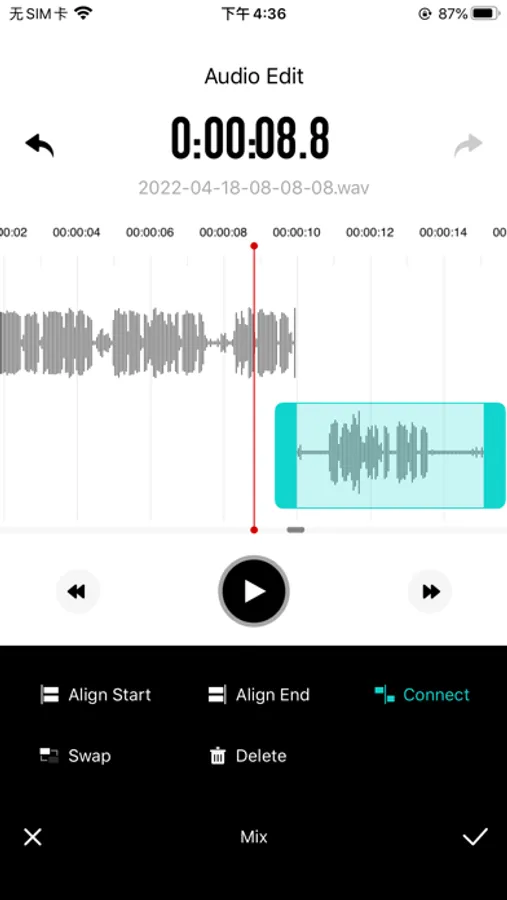 【Audio Editing】 Editing operations such as fading, cropping, splitting, balancing, mixing, and mute elimination can be performed on the audio in the APP.
