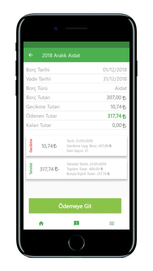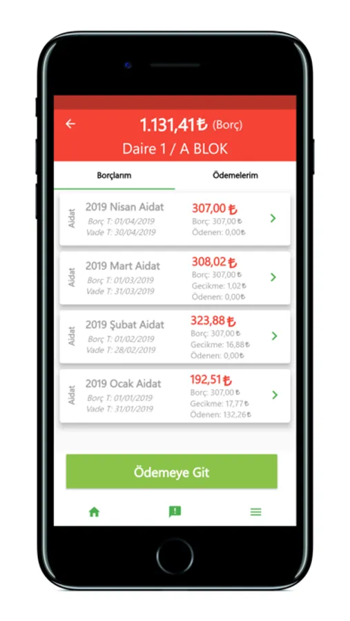 Yönetişim mobil uygulaması ile aidat, ısınma, elektrik, su vb. toplu yapı ortak giderlerine ait borçlarınızı görüntüleyebilir, detaylarını inceleyebilir, kredi kartı ya da banka kartı kullanarak uygulama içerisinden ödemesini yapabilirsiniz. Tüm borçlarınızı ve ödemelerinizi listeleyebilir, finansal durumunuzu güncel bir şekilde takip edebilirsiniz.
