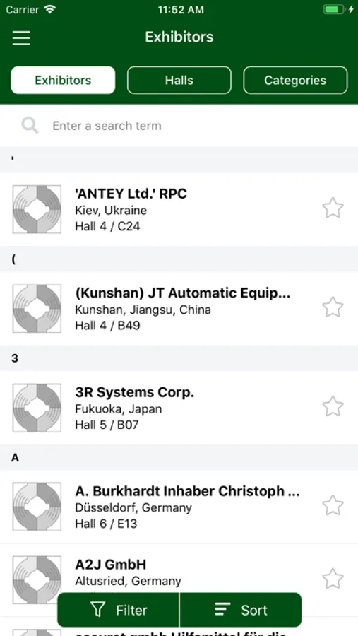 The interactive site map and hall plans are perfect guides for finding your bearings at the Exhibition Centre. A simple touch of a button takes you into the individual halls, allows you to gradually zoom into individual stands to then view an exhibitor’s data entire data as well as the products they offer.
