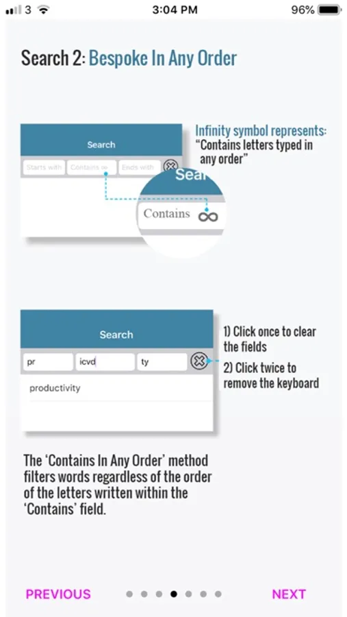 In addition to a conventional search facility and the ability to search by voice recognition. Spell Aid also offers two bespoke methods for finding words, allowing users to look up words based upon the letters they believe to be in the word, with an option for regardless of the order of the letters. This enables users to search for words more easily and with confidence.
