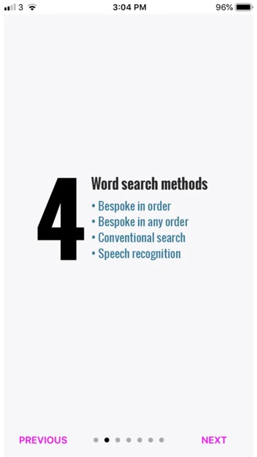 Choose one of FOUR search methods. Search for words by conventional means (including by speech) or by using our bespoke methods, which are ideal for people with spelling difficulties as well as those for whom English is a second language.