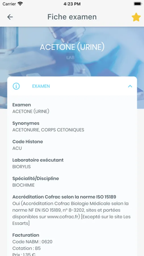Afin de simplifier vos futures recherches, une mise en favoris des analyses est disponible.