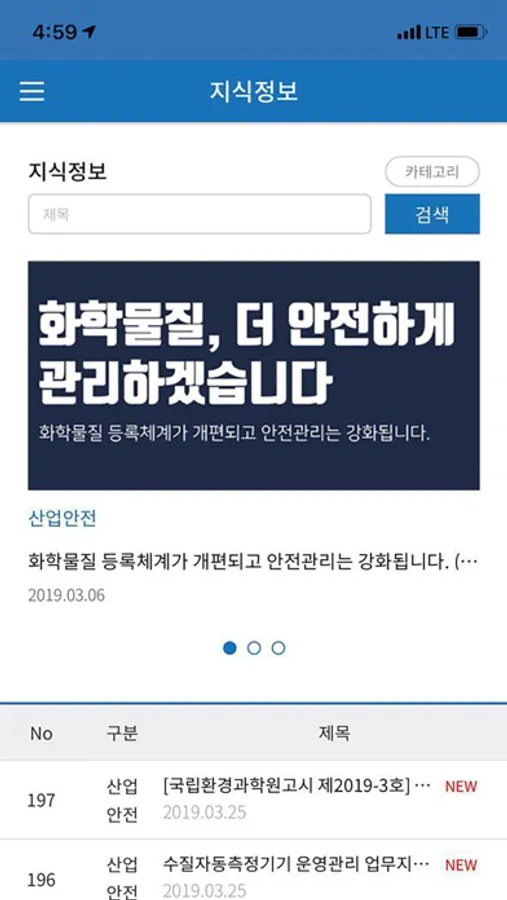 ∇ 관심있는 분야 정보만 모아보고 싶다면 산업안전, 소방/위험물, 환경/가스, 교육/세미나 중 원하는 분야를 선택해 해당 분야의 게시글만 모아 볼 수 있습니다.