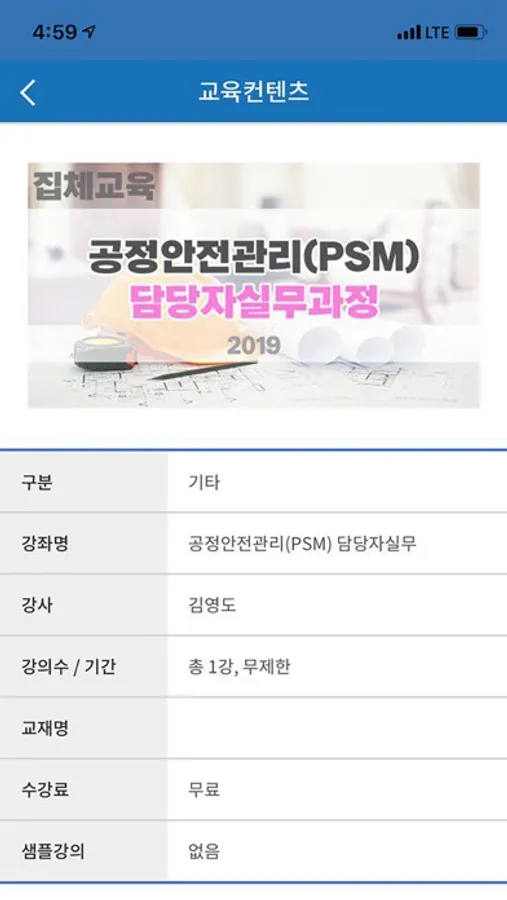 ∇ 공정안전보고서, 장외영향평가, 위해관리계획서, 영업허가 등 안전·환경관리자를 위한 무료강의를 제공하고 있습니다.